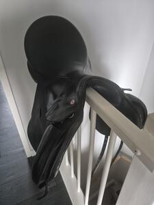 Dit dressuurzadel is ontwikkeld in samenwerking met de bekende dressuuramazone. De Salzgeber is uitgevoerd met een diepe zit en extra zachte kniewrongen die overtrokken zijn met een stroeve bovenzijde. De Salzgeber heeft een ingebouwde voorsingel en V-singelsysteem voor een perfecte ligging op het paard. Uitgevoerd met verende Excellent-boom.