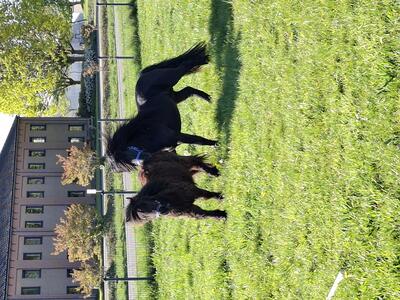En een aandacht punt is wel dat hij bijt aan manen en staart van andere pony's.... als we de manen en staart van zijn maatje insprayen met antibijt scheelt dat zeker wel.